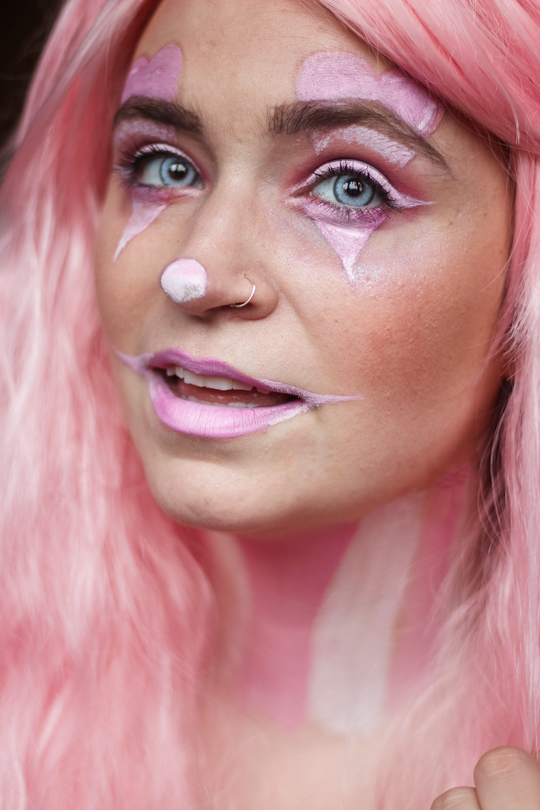 Next up on our easy peasy Halloween makeup looks is this...*shudder* cute clown look. Ugh. Seriously, though, can a clown really even be cute? They just - I don't know. They're just creepy no matter how pink and cute you try to make them.